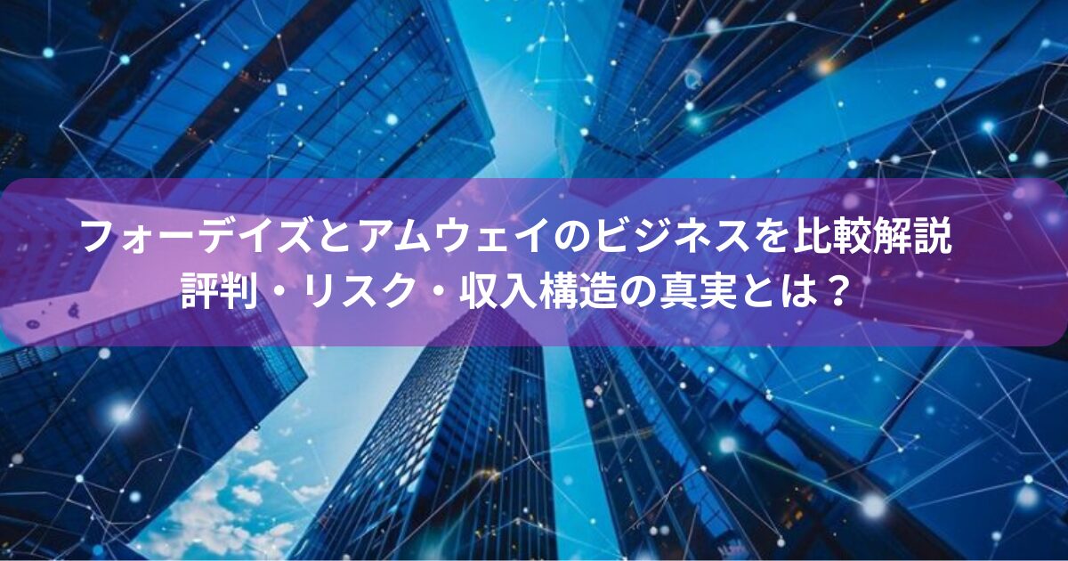 本記事では、フォーデイズとアムウェイのビジネスの構造、収入モデル、商品体験の位置づけ、活動スタイル、評判が分かれる理由、そしてリスクを徹底的に中立の立場で比較します。「違法性はある?」「宗教っぽい?」「稼ぎやすさは?」といったよくある不安も、誤解しやすいポイントとともに分かりやすく整理しています。